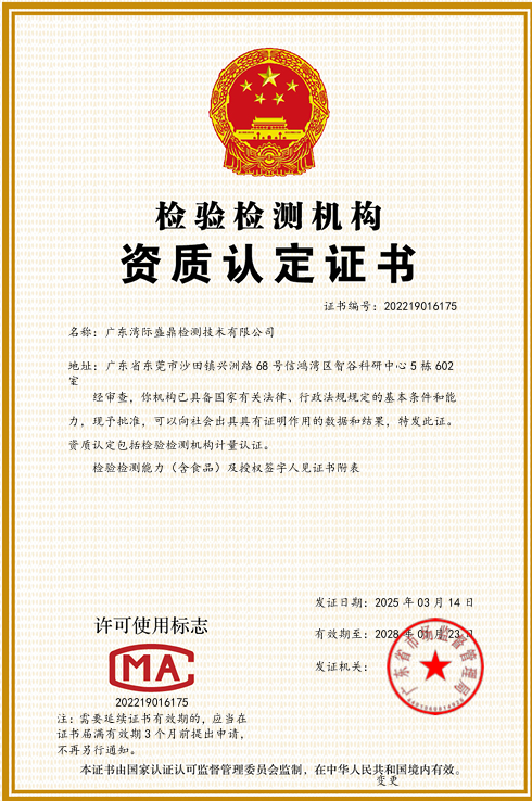 廣東灣際盛鼎檢測技術有限公司公告:2022年8月11日獲得中國合格評定國家認可委員會(CNAS)頒發的實驗室認可證書,截止目前為止,盛鼎防爆實驗室已獲得CMA和CNAS全部資質認可證書。