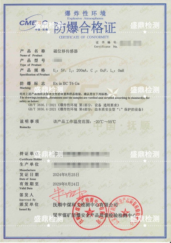 辦理磁位移傳感器防爆合格證案例