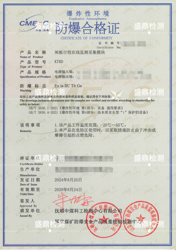 閘板行程在線監測采集模塊防爆認證