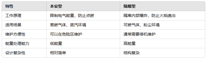同一產(chǎn)品,不同防爆類型,兩者之間有什么區(qū)別?本安和隔爆是工業(yè)安全中兩種主要的防爆技術型式,它們被廣泛用于存在爆炸性氣體/粉塵環(huán)境中;因此,不少產(chǎn)品是同一類但確是這兩種不同防爆型式,今天,我們就來著重進行講解。